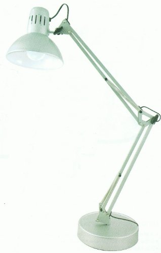 THIS IS A CLASSICAL ANGLE TYPE POISE LAMP FULL SIZE, WITH LONG REAC ARM APPROX 70 CM. INCLUDED IN THE PRICE IS A HEAVY WEIGHTED BASE , AS WELL AS A TABLE CLAMP , ALSO INCLUDED IS A 15 WATT (75WATT EQUIV) LOW ENERGY FULL DAYLIGHT LAMP. THESE ENABLE YOU TO WORK CLOSELY AS THERE IS VERY LITTLE HEAT PRODUCED BY THEM.